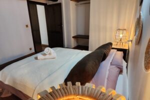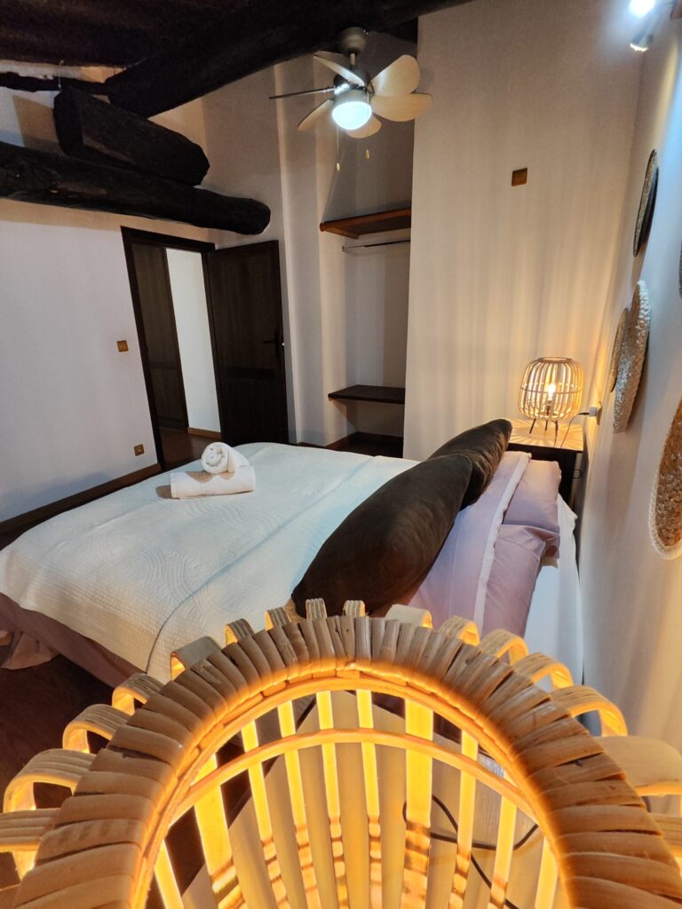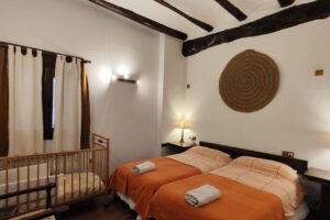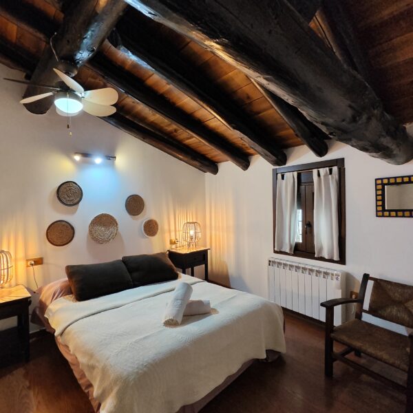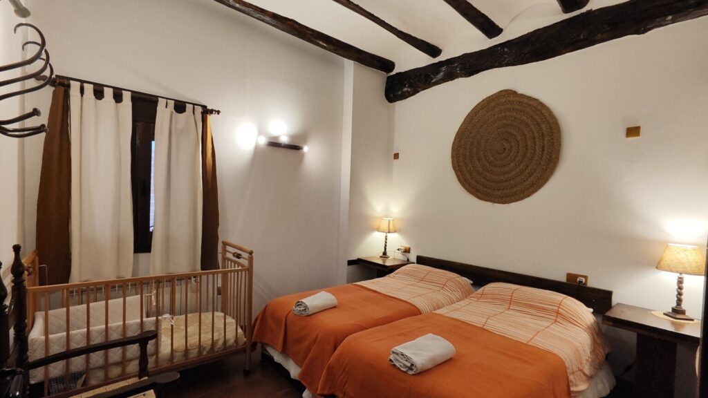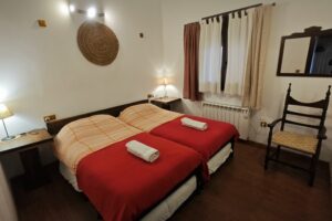 - 1 Habitación, cama doble, capacidad para 2 personas, con la posibilidad de una cama supletoria o una cuna para bebés. Sábanas y edredones.